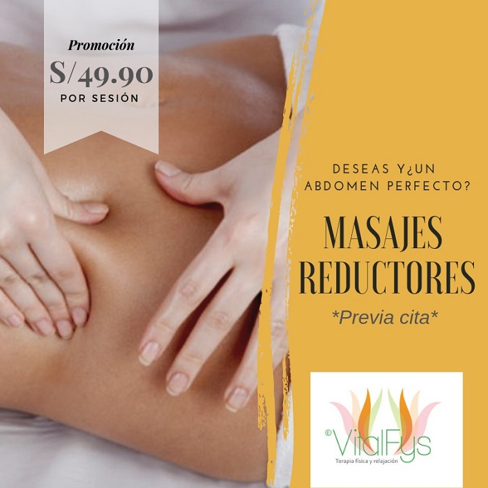 OFERTA DE VERANO Duración: 01 hora Incluye: Maso terapia para reducción de medidas Masajes Linfáticos (Drenaje) Faja Térmica Arcilloterapia Fortalecimientos muscular mediante Ems Aplicación de ultrasonido PRECIO POR PERSONA S/ 49.90 Regulaciones: Las técnicas varían de acuerdo al progreso y necesidad corporal en cada sesión los pacientes deben portar un bibidi de algodón …